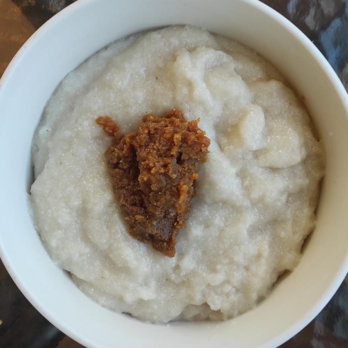 Servir en un cuenco y colocar por encima el miso. Mezclar si se desea y disfrutar!